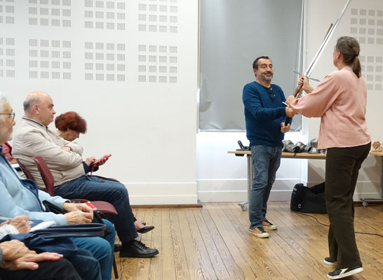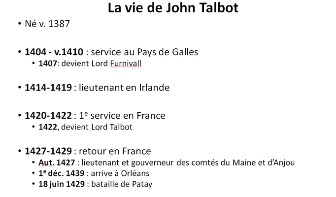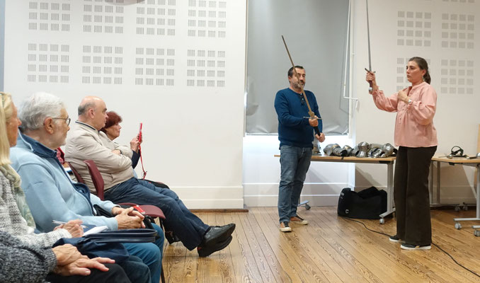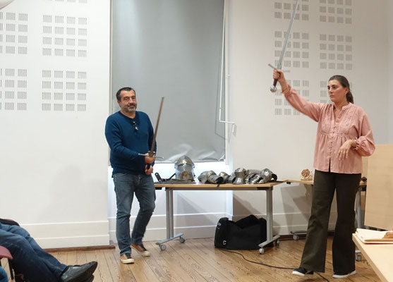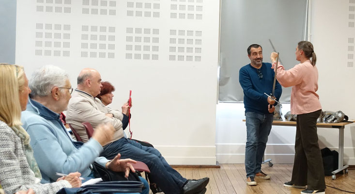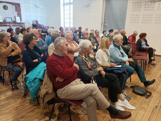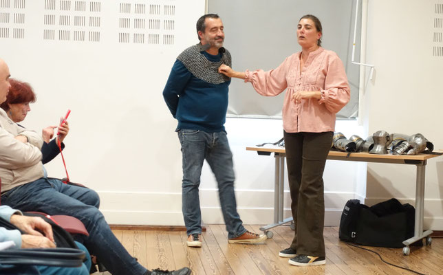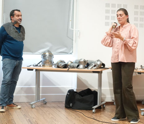 Lors de la conférence du 4 octobre consacrée à Talbot, une cinquantaine de personnes ont assisté pour écouter Marie Fauré, qui a présenté la conférence et exposé des armes de l'époque.